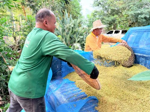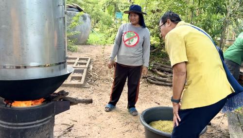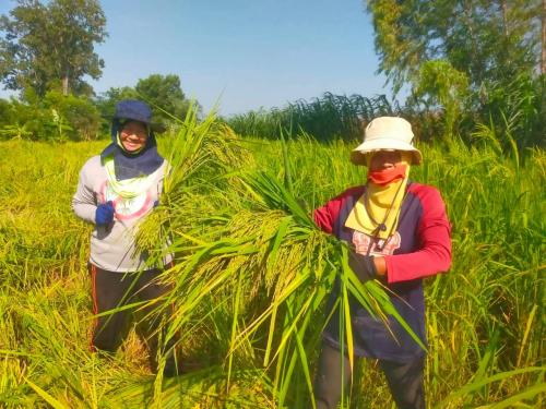 โดยครั้งนี้ เจ้าหน้าที่ได้มีโอกาสเยี่ยมชมกระบวนการผลิตข้าวเหนียวระยะเม่า ซึ่งเป็นหนึ่งในผลิตภัณฑ์ใหม่ ที่อยู่ในระหว่างการพัฒนาของกลุ่มฯ โดยทาง กลุ่มฯได้พาเยี่ยมชมตั้งแต่การคัดเลือกข้าวเปลือกที่ผ่านการเก็บเกี่ยวใหม่ๆ การทำความสะอาดอย่างพิถีพิถัน และนำไปผ่านกระบวนการหุงโดยใช้เตาหุงที่ออกแบบมาเป็นพิเศษให้เหมาะกับการหุงข้าวเหนียวระยะเม่า แทนการนึงแบบข้าวเหนียวทั่วไป เพื่อให้ข้าวเหนียวระยะเม่ามีความเหนียวนุ่ม ไม่ร่วน ซึ่งก่อให้เกิดผลิตภัณฑ์ข้าวเหนียวระยะเม่าที่มีคุณภาพและรสชาติเป็นที่ยอมรับ