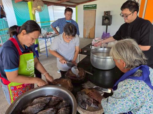 3. การเสริมทักษะอาชีพ: โดย ปราชญ์สัมมาชีพ ในพื้นที่ ได้ให้ความรู้พื้นฐานเกี่ยวกับการฝึกอาชีพและการประกอบธุรกิจเบื้องต้น พร้อมทั้งนำ "ฝึกปฏิบัติทักษะอาชีพการทำปลาส้ม" เพื่อเป็นแปรรูปทรัพยากรที่มีอยู่ในชุมชน การส่งเสริมการสร้างรายได้และลดรายจ่ายในครัวเรือน